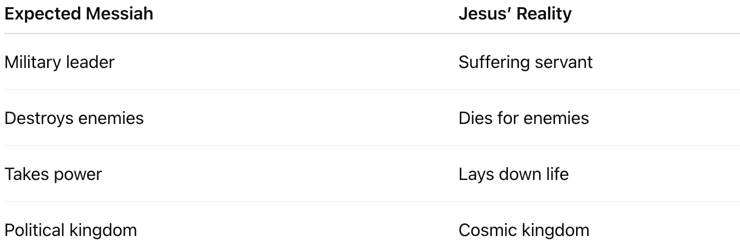 👉 This is why people later reject Him: He doesn’t perform the expected script of domination or kingship.