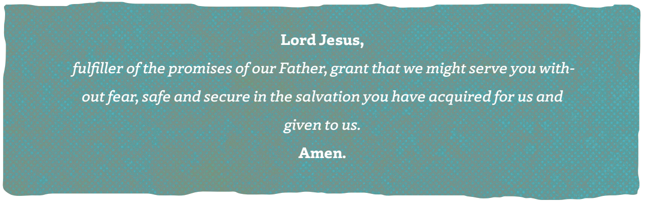 The fulfillment of all these promises comes in Jesus, whom John, the son of Zechariah, would announce as he goes “before the Lord to prepare his ways” (vs. 76). In Christ, we are “delivered from the hand of our enemies” that we “might serve him without fear” (vs. 74). Those two words, “without fear,” signal a foundational shift, for menacing fears encircle human life: fear of enemies and evils, fear of disease and death, fear of condemnation and hell. All fears, however, cower and retreat before the Fearless One, Christ our Lord.