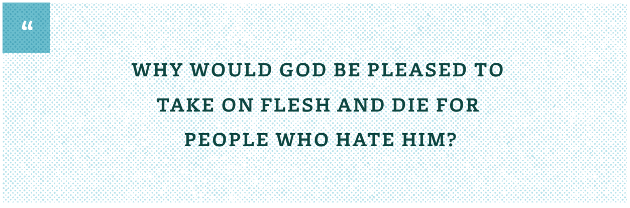 This is the message placed in the mouths of the Old Testament prophets and sung by angels to shepherds. And this is the message Christians proclaim and cling to today. Out of unfathomable love, God was pleased to become man and shed his blood to bring peace and reconciliation to the world. Christmas is the declaration that God is not only willing to make peace with you, he is pleased to do it.