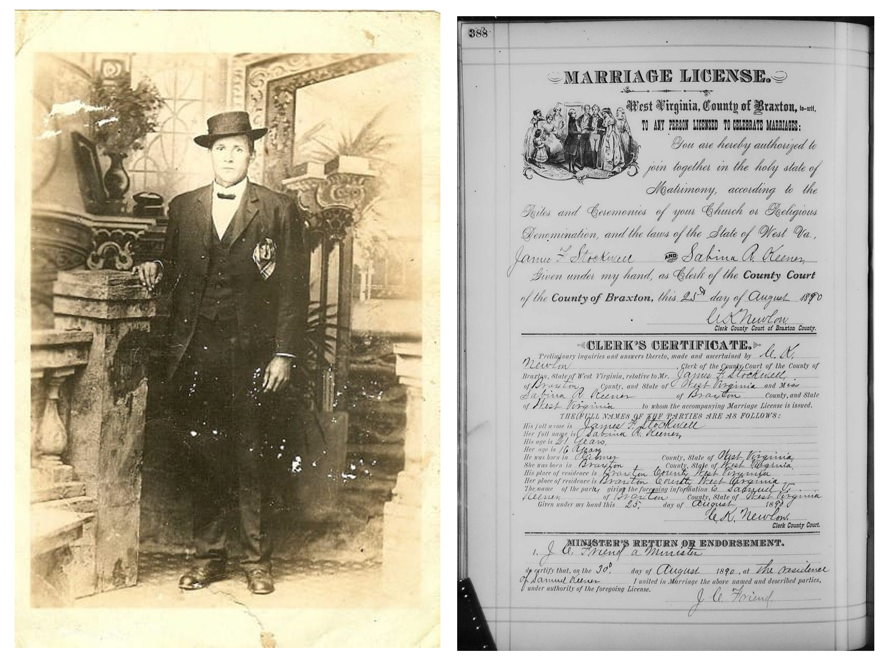 My great-grandfather and grandmother on the Stockwell side of the family were James French Stockwell (1869-1923) and Sabina Rose Keener (1874-1923). They married on August 30, 1890 in Braxton County, WV.