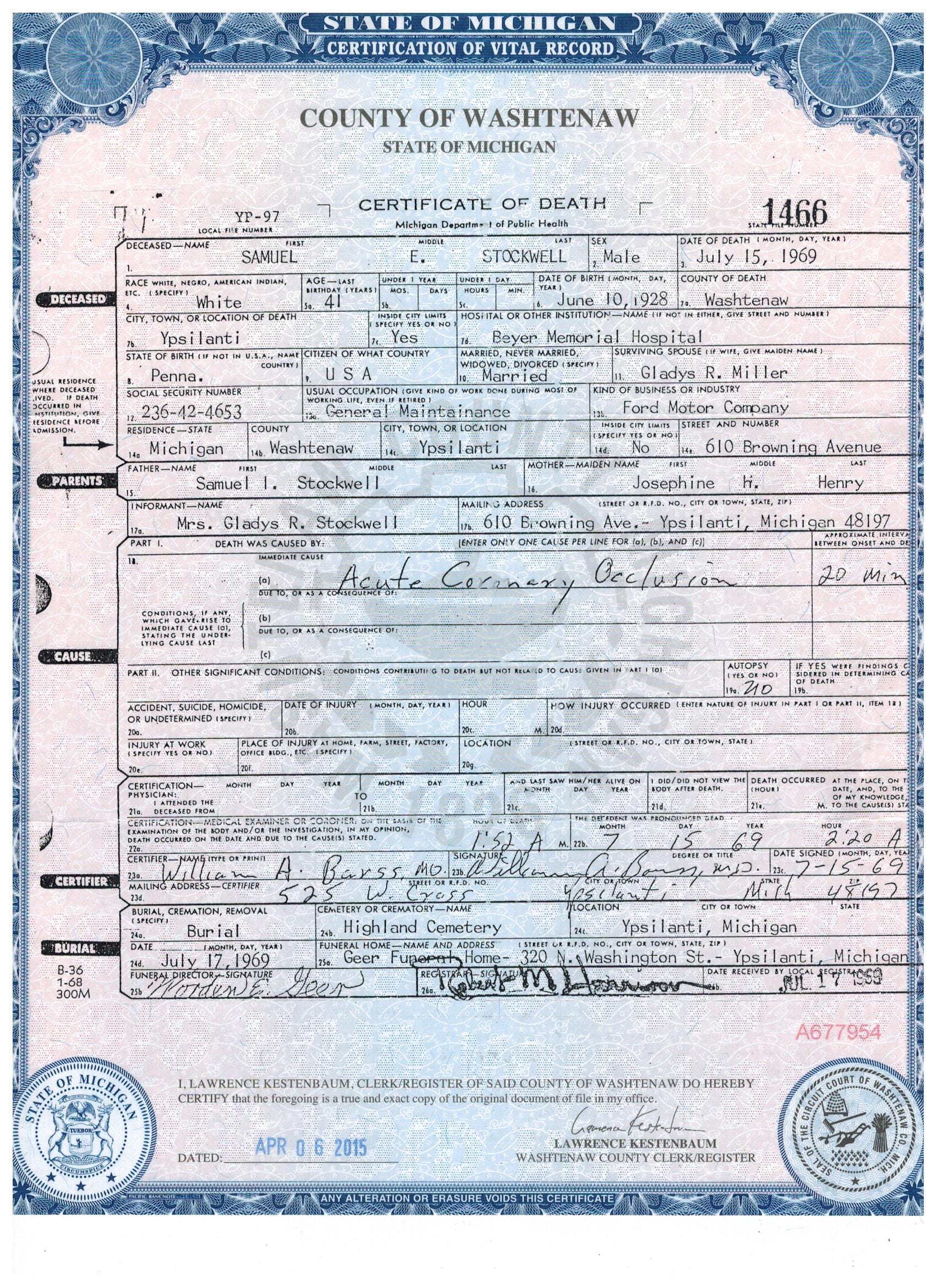 So much for Mr. Samuel Everett Stockwell ... so many questions have been answered. His genetics have influenced my family in several ways, but especially with the love of cars and fast driving. And, there's more, but just know that I may have been raised by the Bosch family but, deep in my heart, there's something deep within me that connects me to the Stockwells in a way I cannot begin to explain.