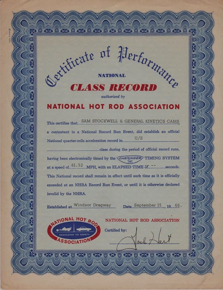Milan Dragway sponsored an annual Sam Stockwell Memorial Day for several years after he passed. The dragway is now closed, and only the echoes of victories and defeats remain. Perhaps one day there will be a resurrection of the glory of dragracing at Milan Dragway. Until then, Sam remains a legend in the memory of those who knew him and raced with and against him.