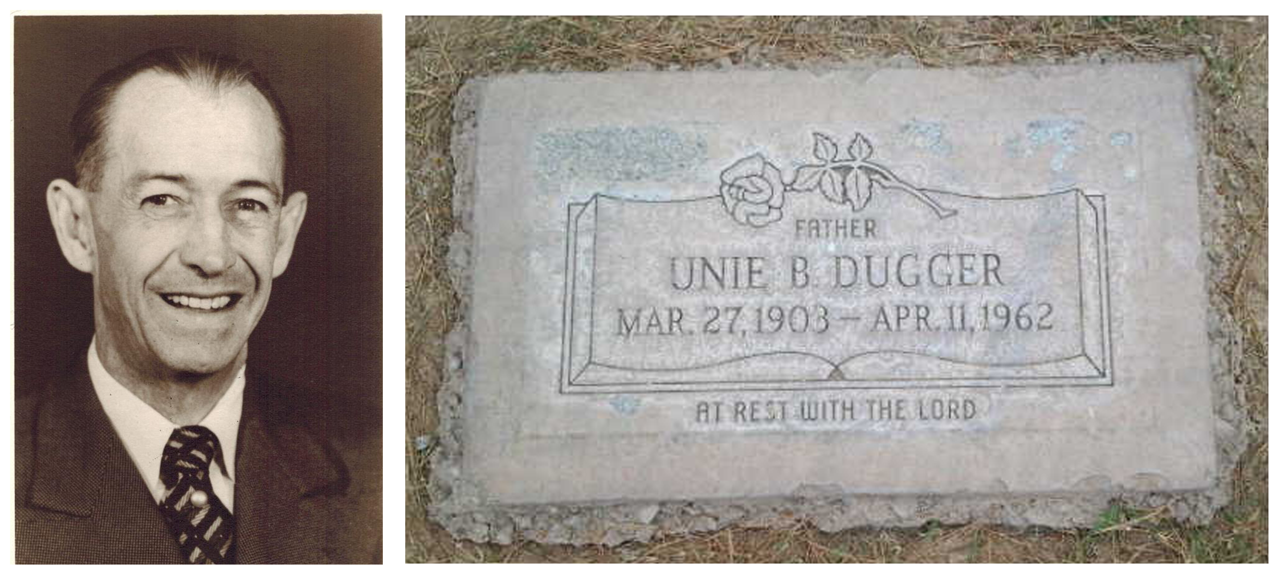 Unie Barger Dugger (1903-1962) and Clara Mae Scroggins (1903-1984) had eight children: Mildred Keoma Dugger (1924-1997), Dorothy Leona Dugger (1926-1997), Julie Mae Dugger (1927-1969), Unie Lee “Bud” Dugger (1929-1985), Nadie “Nettie” Edna Dugger (1931-2008), June Rose Dugger (1934-1987), Howard William Dugger (1936-1987), and Michael David Dugger (1942-2013).