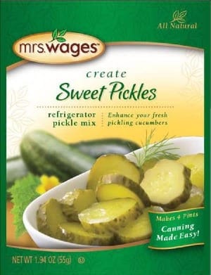 Prepare a brine as directed using Mrs. Wages Sweet Pickles mix. (This saves a lot of time and works beautifully!)