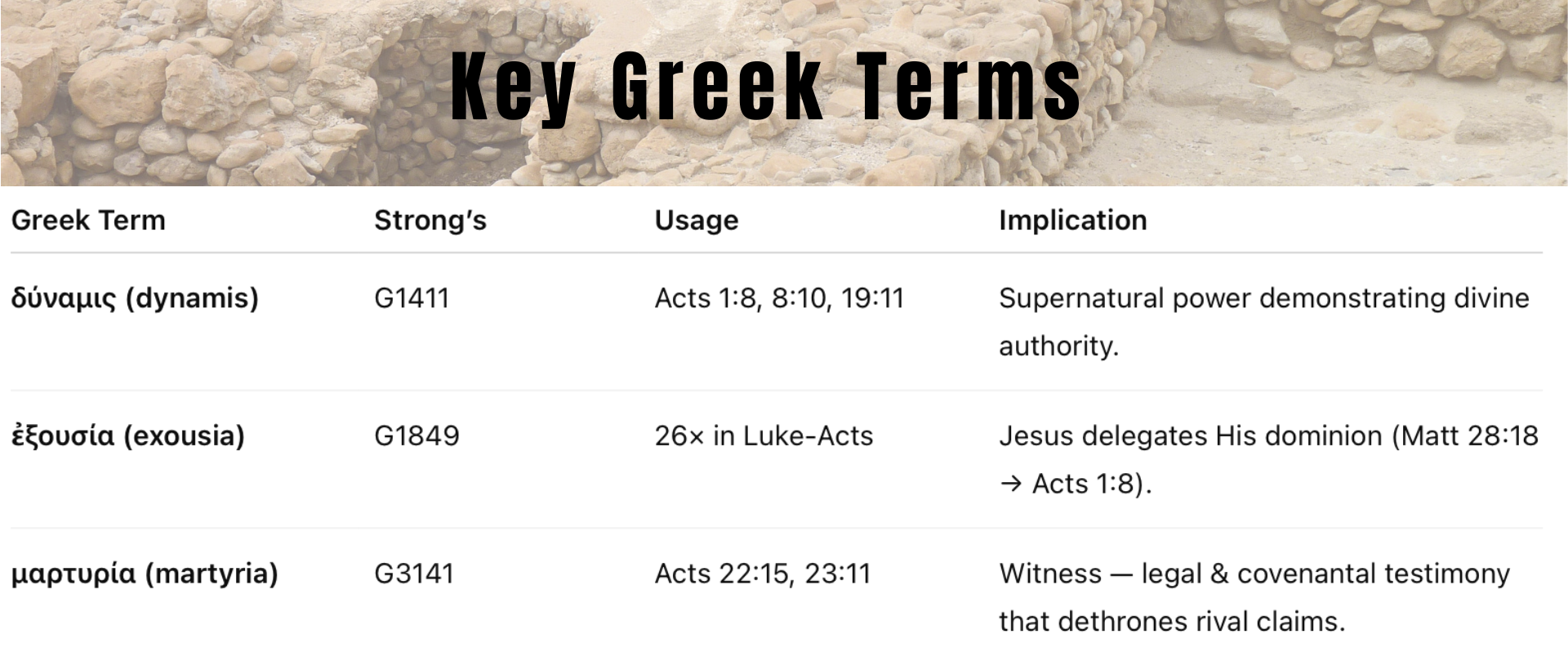 Consider the key Greek terms that, in themselves, create the unmistakable narrative as we view the spread of the Gospel through Acts.