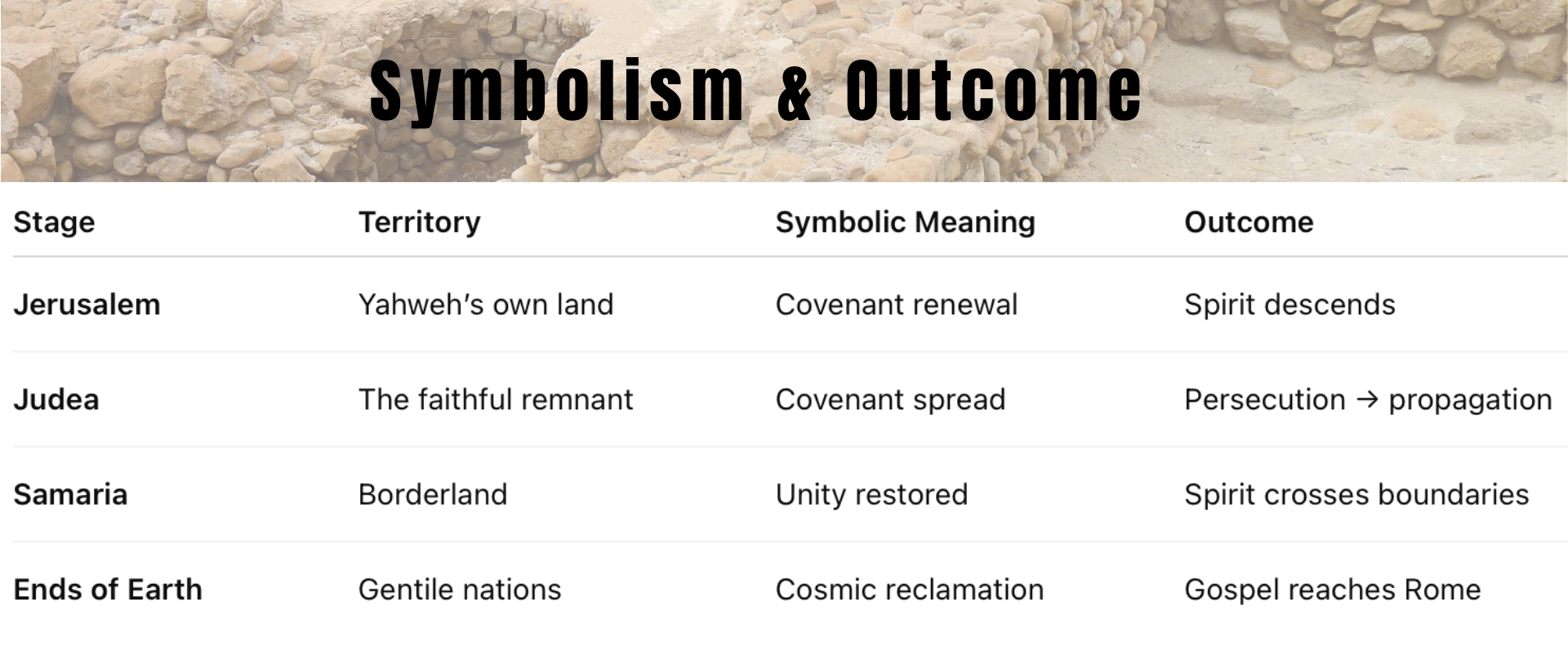 The Holy Spirit that fell on Jerusalem believers was no longer bound to Jerusalem, no longer territorial, as the Gospel continued to spread beyond Judea into Samaria.