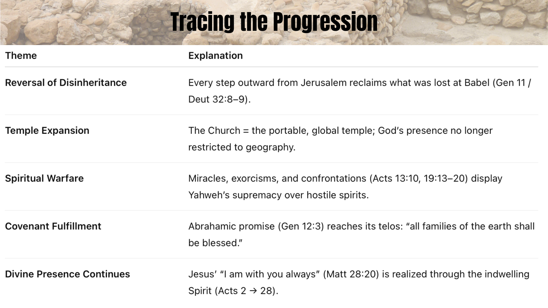 Reading through Acts, it stirred my attention to consider how the entire Book becomes a record of how the disinherited nations of Deuteronomy 32 were being reclaimed through the Spirit-empowered Church.